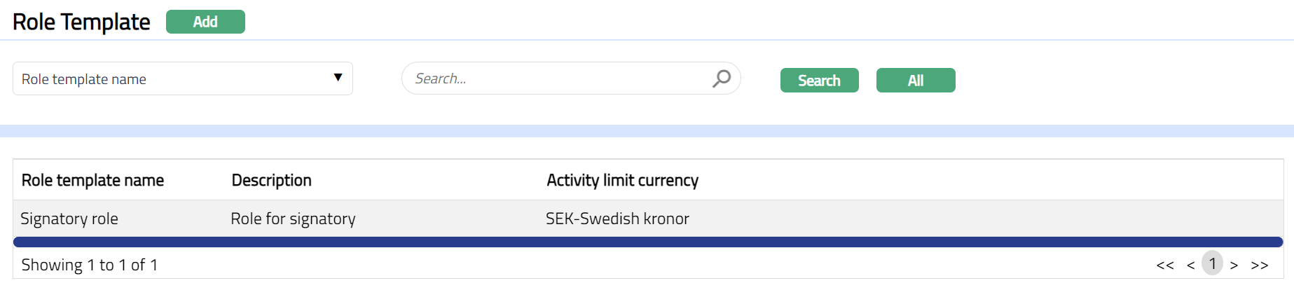 From Admin menu, click Channel Banking and then Role Template. Role Template Search page appears.