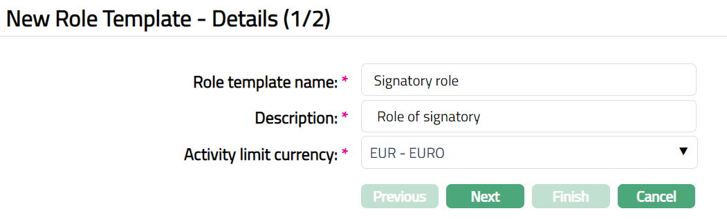 Click Add. New Role Template - Details (1/2) page appears.