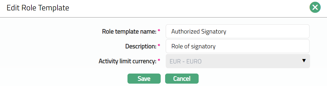 Click Save. Role Template page appears with the edited details.