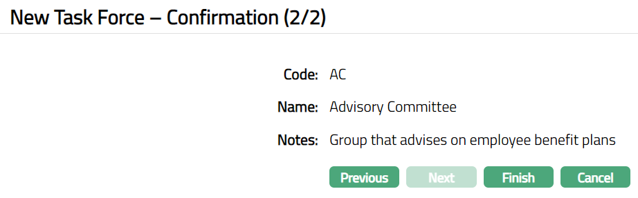 Click Next. New Task Force -- Confirmation (2/2) page appears.