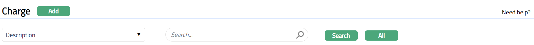 - From Admin menu, click Pricing, Charges, and then Charge Schemes. Charges Search page appears. All Charges available in Aura appear on the page.