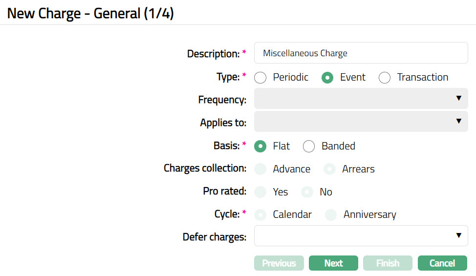 Event: Choose this option if you want the charge to be applied based on event triggers.