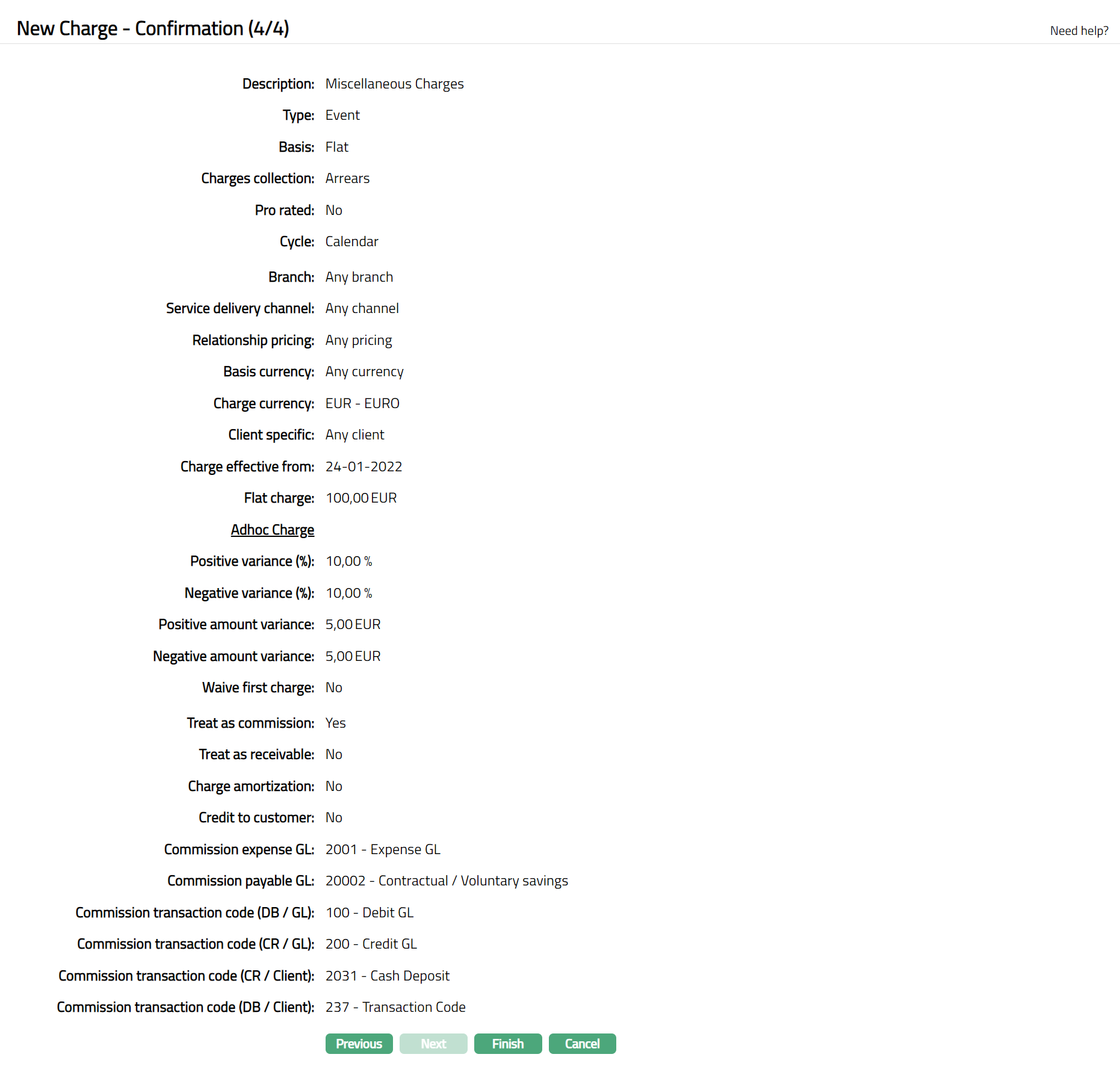 Click Next. New Charge -- Confirmation (4/4) page appears.