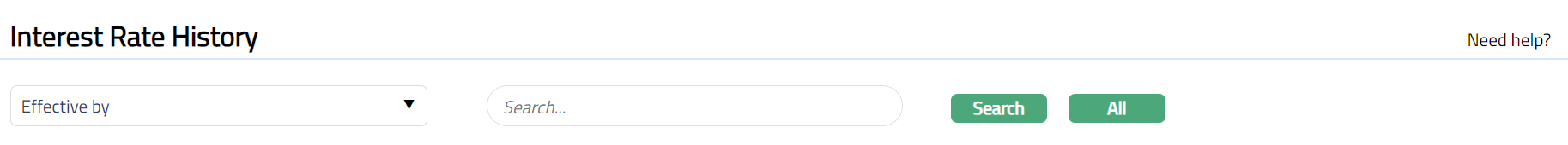 Interest Rate History menu allows you to view all the Interest Rates maintained in Aura. If you add any Interest Rate under Interest Base menu, you can view those Interest Rates under Interest Rate History.