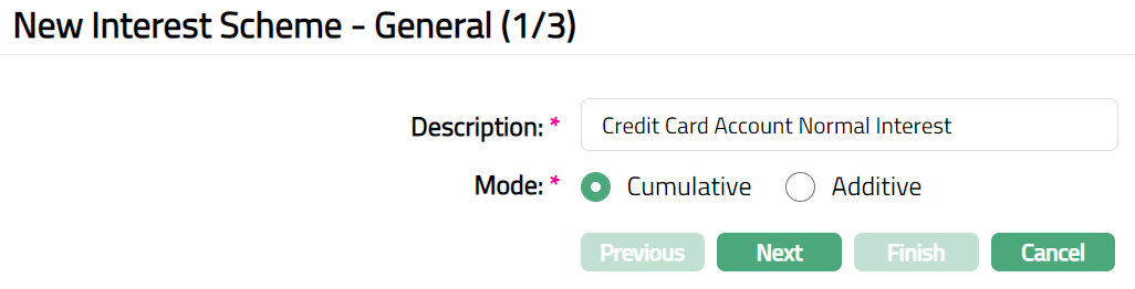 - Click Add. New Interest Scheme -- General (1/3) page appears.