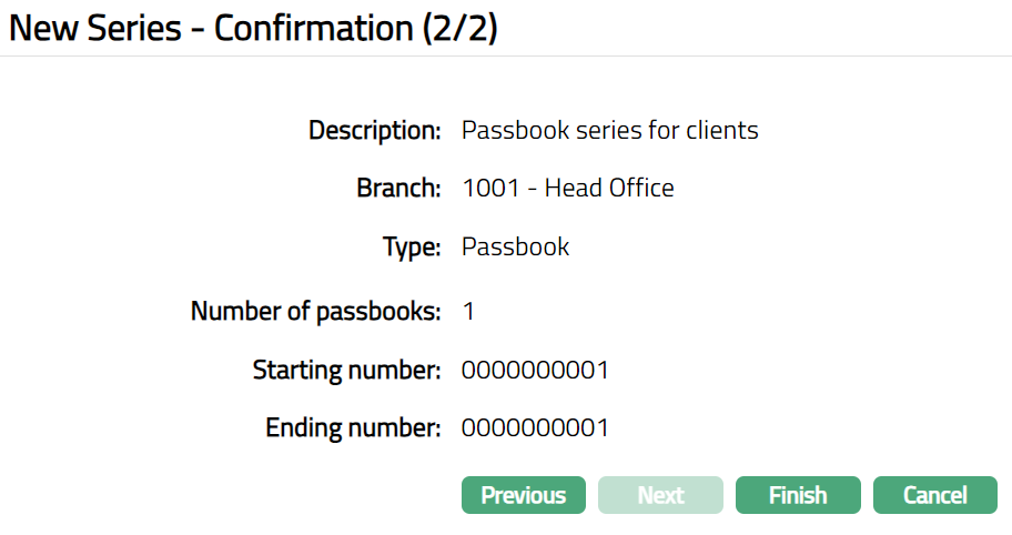 Once status is Printed --The Series status is changed from Generated to Printed. Passbooks with status as Printed are available for issuance. .
