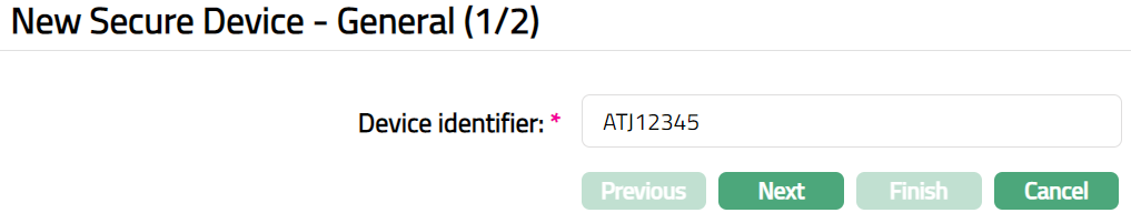 - Click Add. New Secure Device -- General (1/2) page appears.