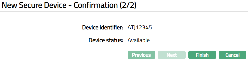Click Next. New Secure Device Confirmation (2/2) page appears.