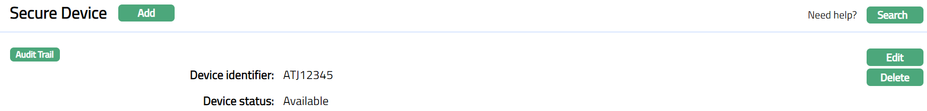 Device status is set to Available as soon as the record is saved. Only if the Device status is Available, it can be issued for use to a Channel Banking user (using Admin > Channel Banking > User Maintenance).