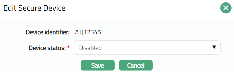 Click Save. Secure Device page appears showing the Device status as Disabled.