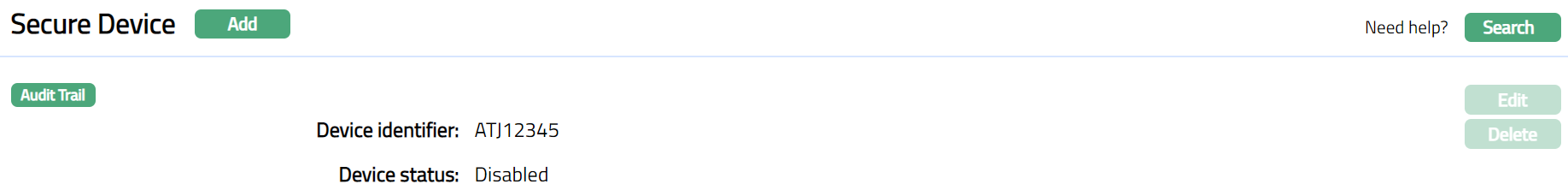 When you want to disable the Device, say at the request of a customer who has lost / misplaced the device, you need to mark it as such using the Edit option.