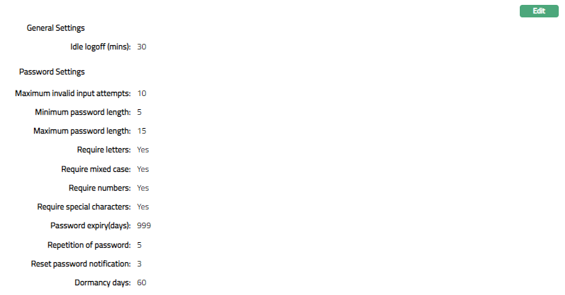 Password expiry (days) - It is the number of days after which a password will expire. The user has to change his password before it expires; else, he/she will not be able to login to Aura and has to contact the administrator for a reset.