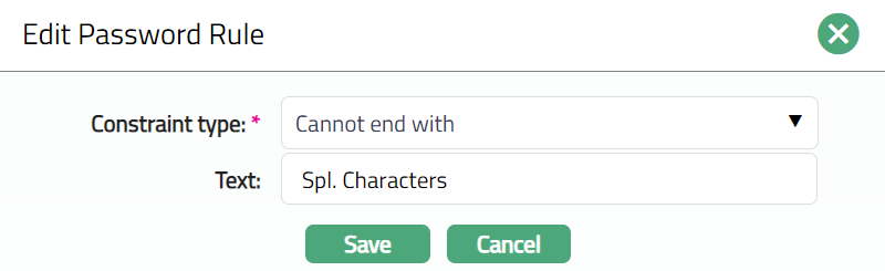 - Select the required rule and click Edit. Edit Password rule page appears.