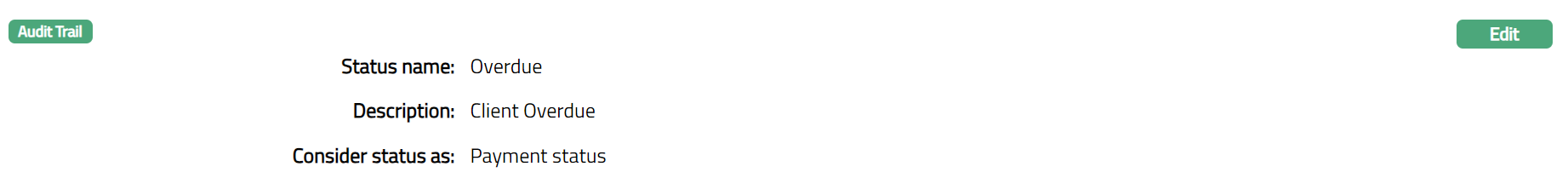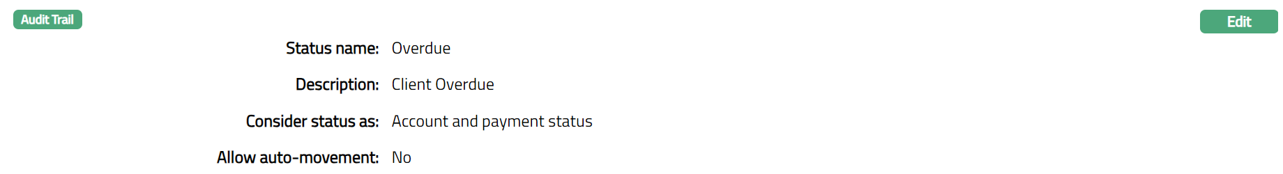 - Click Save. Preferences tab appears with the edited details for both Account Status / Payment status. Sample Screen shown below.