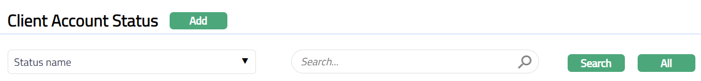 - From Admin menu, click Status and then Client account status. Client Account Status search page appears.