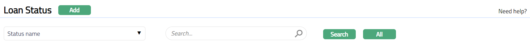 - From Menu click Admin, then click Status and then Loan status. Loan Status Search Page appears.
