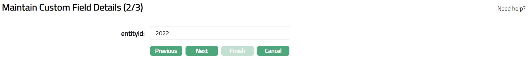 14. Click Next. Maintain Custom Field Details (2/3) page appears.