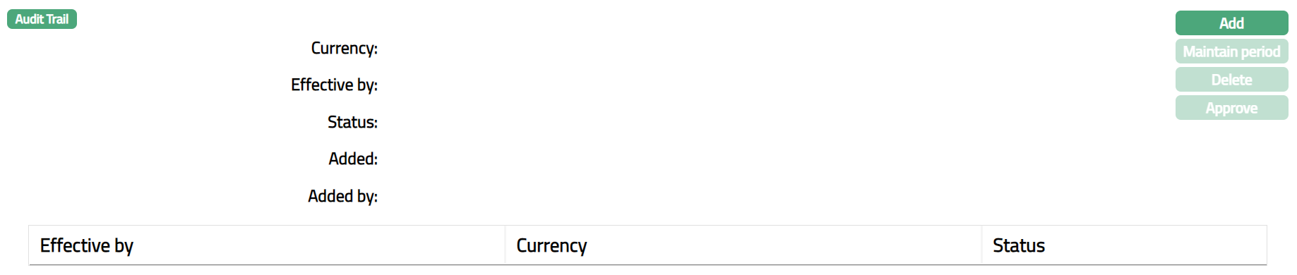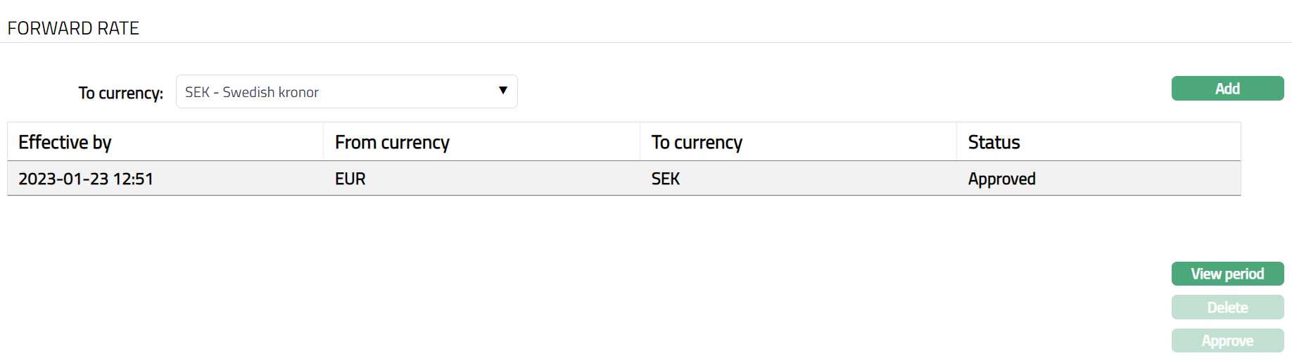 NOTE: Once the forward rate is approved, Maintain period button will appear as View period -- as you can only view the approved rates and not make any further changes. Sample screen shot shown below.