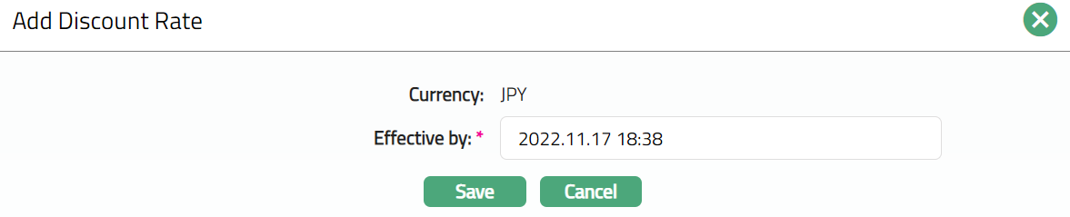 7. The Effective by box shows the current business date and time by default. Update the date and time from when the new rate should come into effect. The date-time can be only the current or the future date-time.