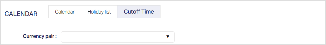 This field will be blank because no currency pair is selected yet. You must choose/select the required currency pair from the drop-down list to view or maintain the Cutoff Time.