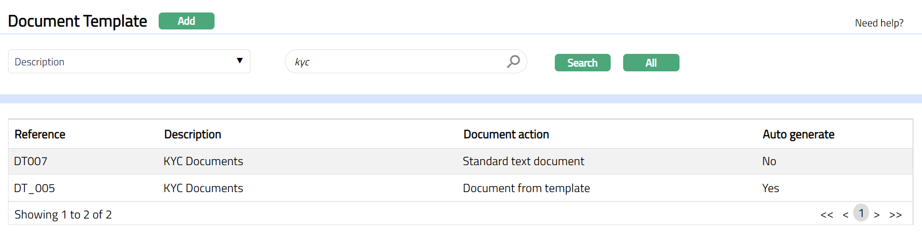 This menu allows you to maintain the details about the Document templates that can be stored in Aura and used during transaction processing / contract life-cycle events. These templates can be mapped in the Document Template Settings tab in various Products for document generation as required.