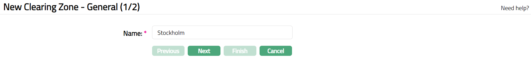 - Click Add. Clearing Zone -- General (1/2) page appears.
