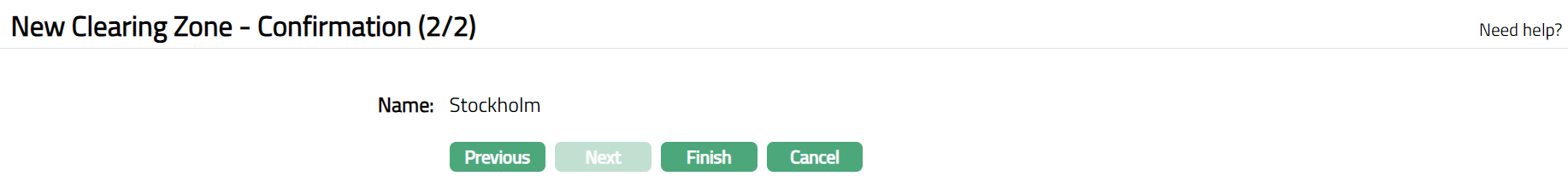 Click Next. New Clearing Zone -- Confirmation (2/2) page appears.