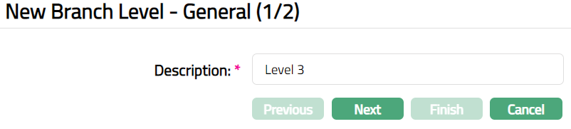 Enter Description for Branch Level. For example: Level 3.