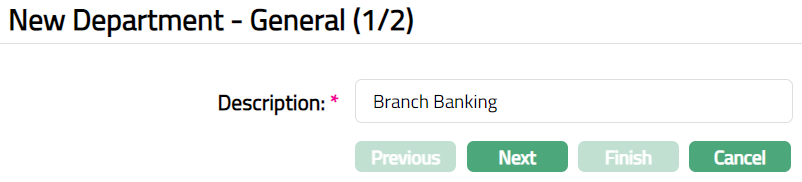 Department option allows you to maintain multiple departments under your bank. This will help identify various functional units for your bank. This classification helps in providing certain features to the departments. One such example is budgeting.