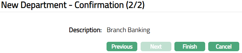 Click Next. New Department -- Confirmation (2/2) page appears.