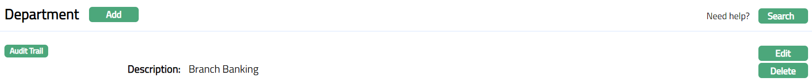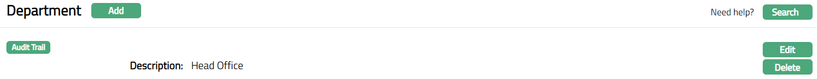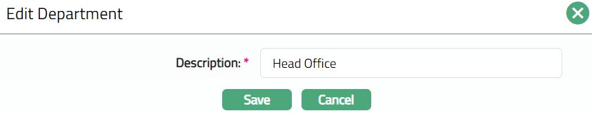 - Click Save. Department page appears with the edited details.