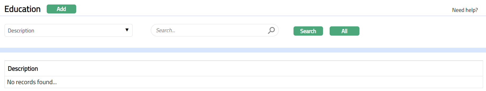 - From Admin menu, click System Codes, Generic definitions, and then Education. Education search page appears. All Education types available in Aura appear on the page, sorted alphabetically.