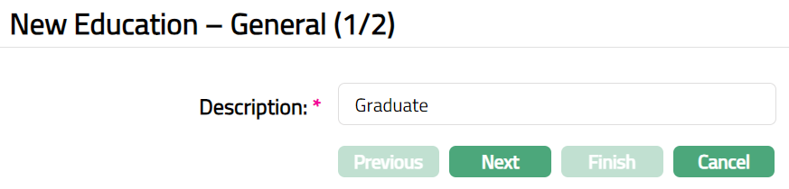 Enter Description that will be applied to the education type. For example, Graduate.
