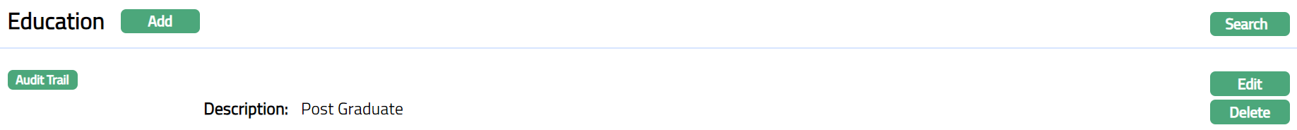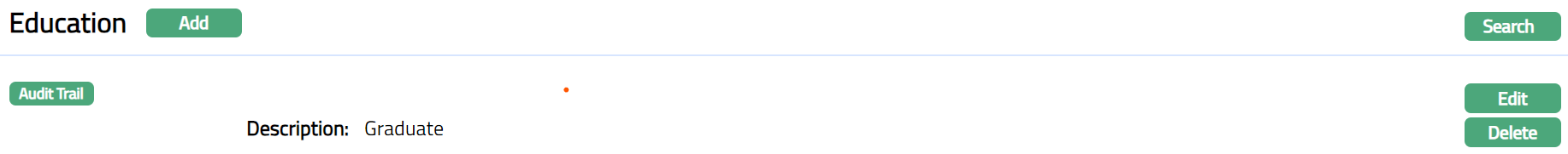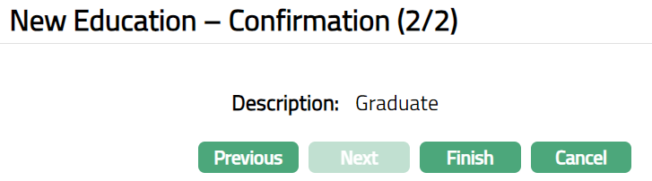 - Click Finish. Education page appears displaying the details of the record you added.