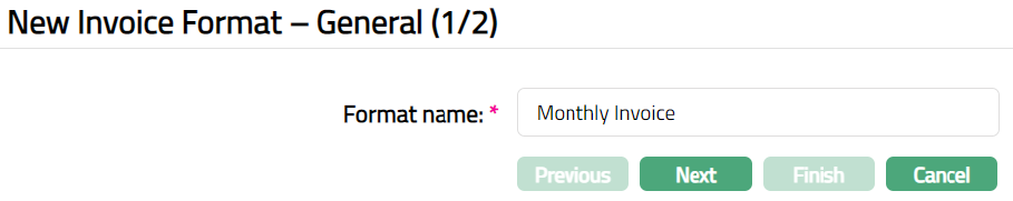Enter the Format name for the Invoice Format. For example, Monthly invoice.