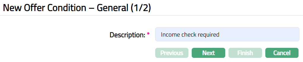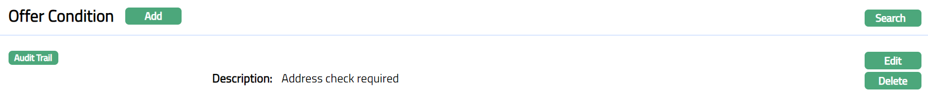 - Click Finish. Offer Condition page appears displaying the details of the record you added.