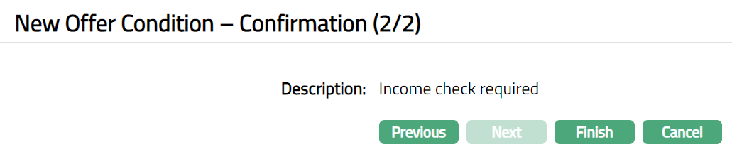 Click Next. New Offer Condition -- Confirmation (2/2) page appears.