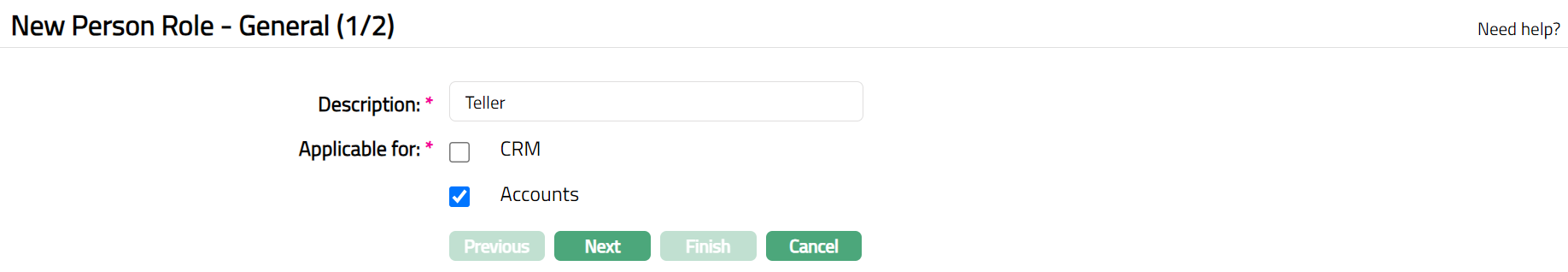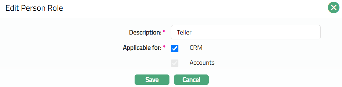 Check the check box for which the Person Role is Applicable for. The available options are CRM and Accounts. You can check one or both of the checkboxes.