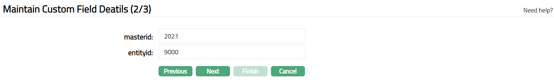 Click Next. Maintain Custom Field Details (2/3) page appears.