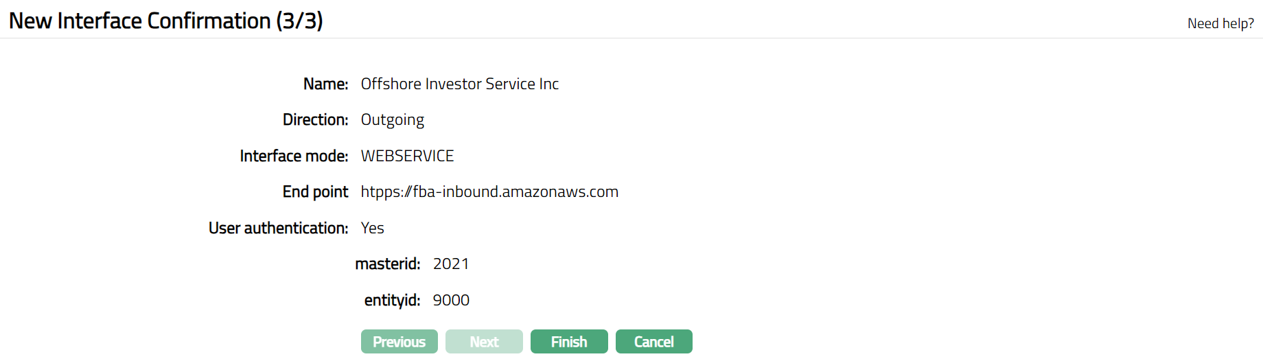 - Click Finish. Interface Maintenance page appears with the added details.