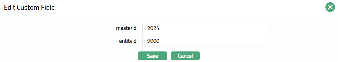 Access Custom Fields page to enter the entityid and masterid.