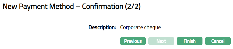 Click Next. New Payment Method -- Confirmation (2/2) page appears.
