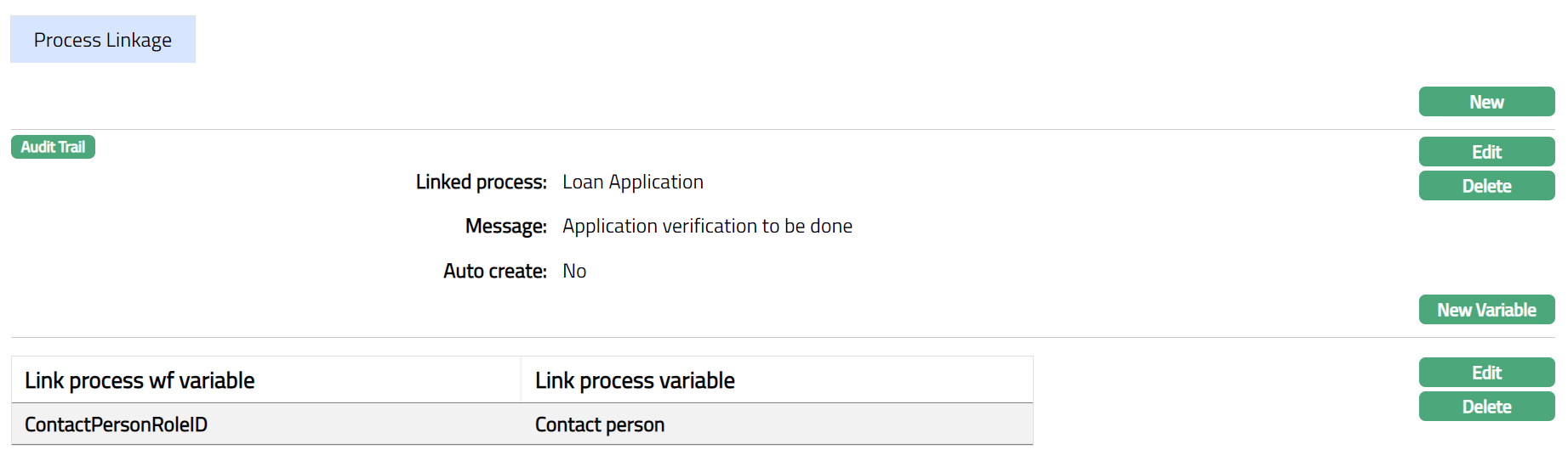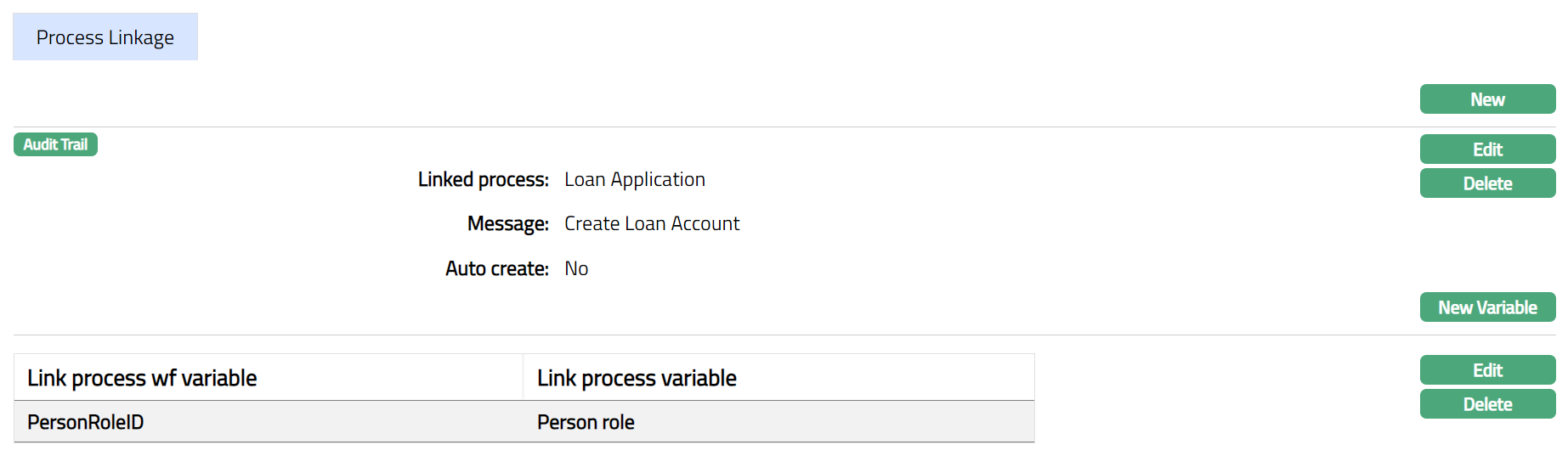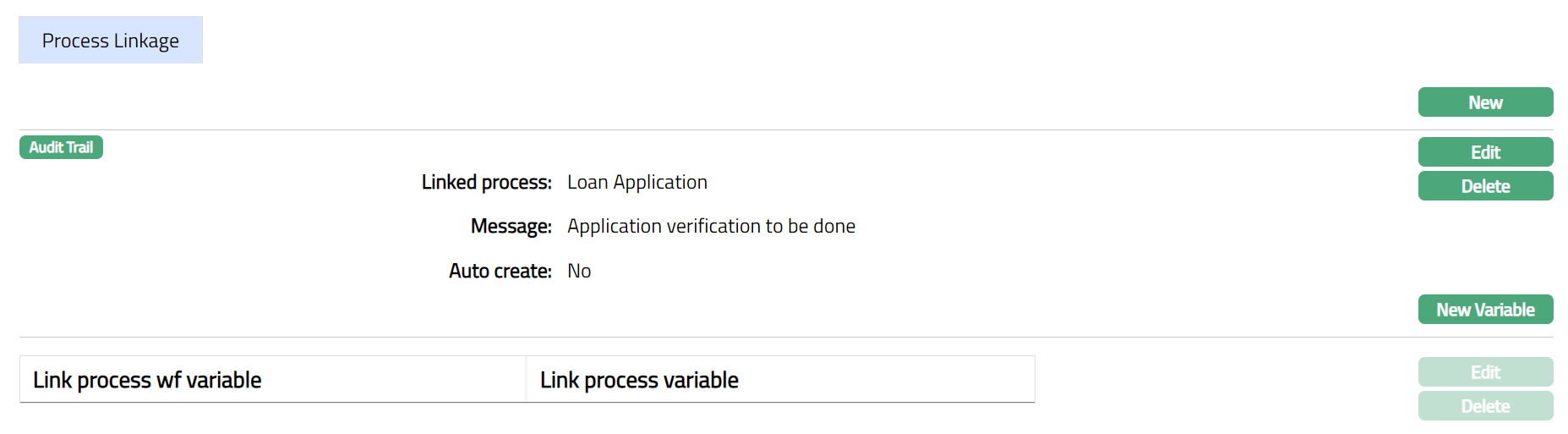 - Click New Variable. New Linkage Process Variable page appears.