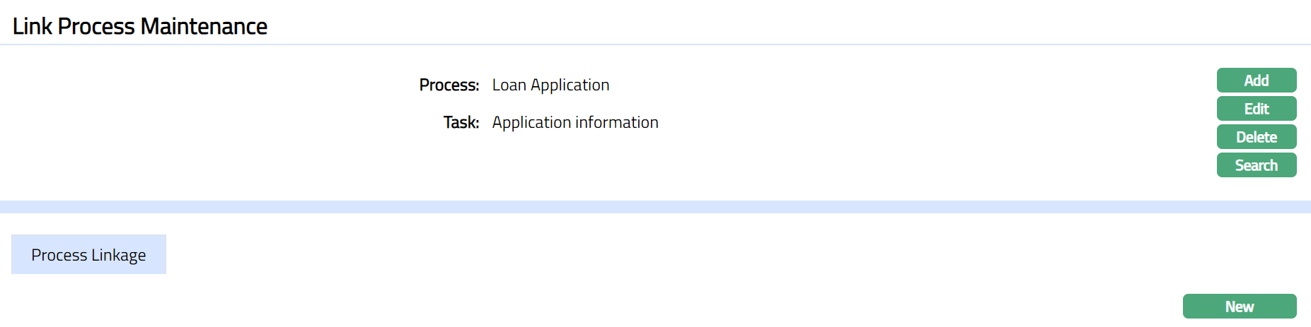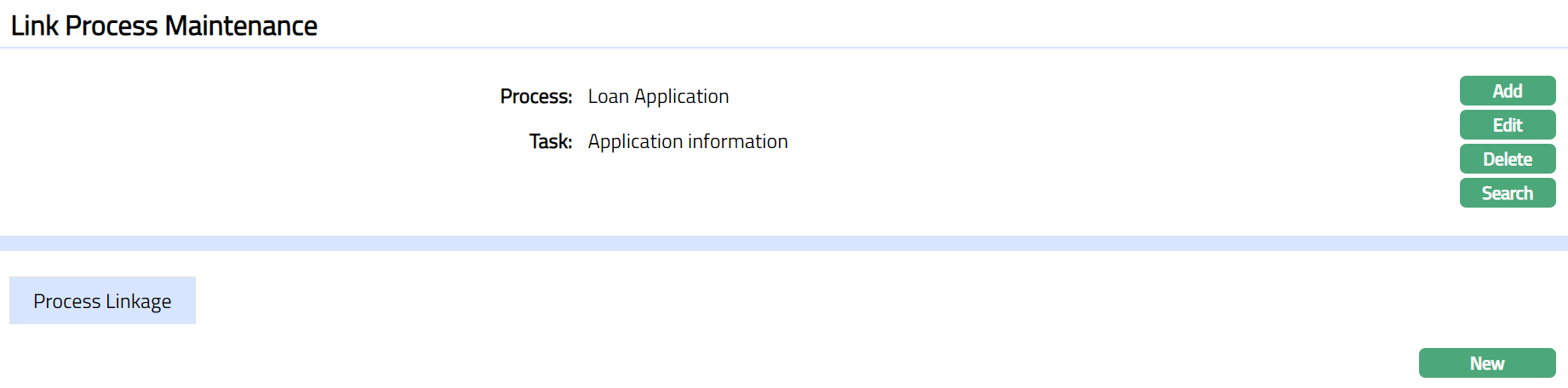 - Click New. New Process Linkage page appears.