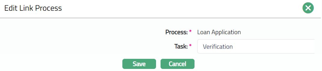 - Click Save. Link Process Maintenance page appears with the edited details.