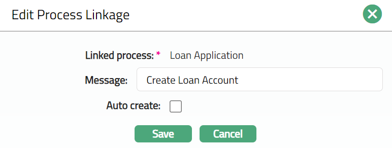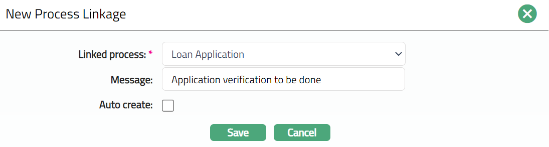 Enter Message for the Process Linkage. If Auto create option is not selected, then the field will be enabled.