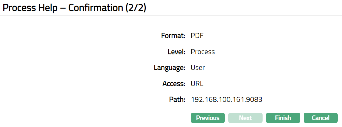Click Next. Process Help -- Confirmation (2/2) page appears.