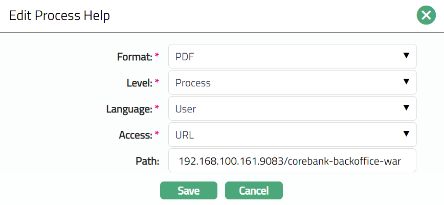 Process Help menu allows you to maintain the information about the Process Help files saved in your system. Using the information maintained here, you can trace the help files.