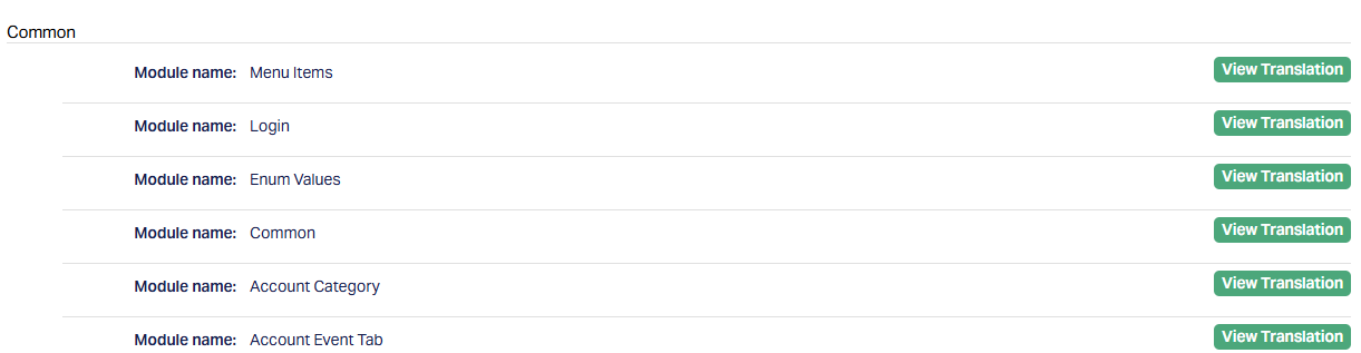 2. Click on any of the available module categories (e.g., Common). You will see a list of sub-modules, each with a View Translation button next to it.