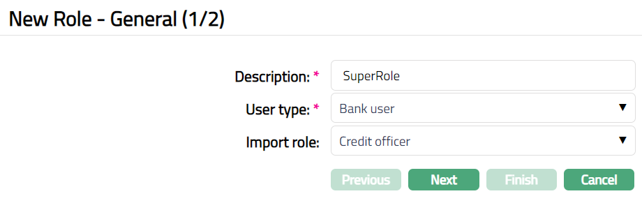 Click Add. New Role -- General (1/2) page appears.